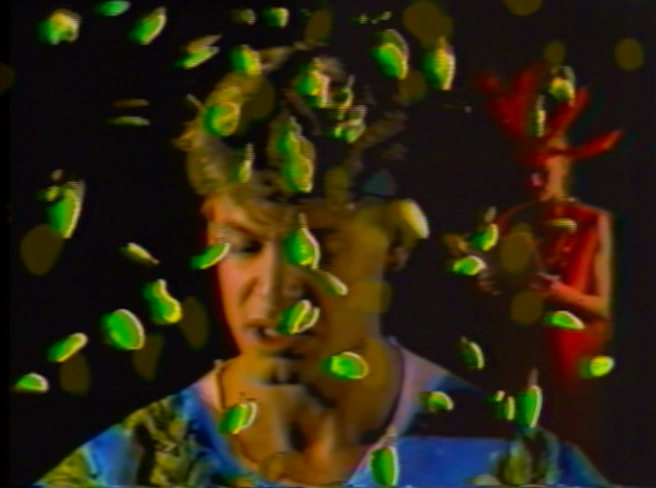 Twelve years after making the experimental black-and-white 16mm film, Alchemy of the Word, I ran the film through a prototype digital video synthesizer called a Chroma-Chron, and added a soundtrack by the East Village band, Liquid, Liquid and the German electronic music composer, Holgar Czukay. The result is a pulsing, meditational, almost tribal film containing lurid colors and dense, finger paint-like qualities. In a sense, the video is closer to what I’d intended when I made the original black-and-white film and follows the same Rimbaud-esque disordering of the senses.